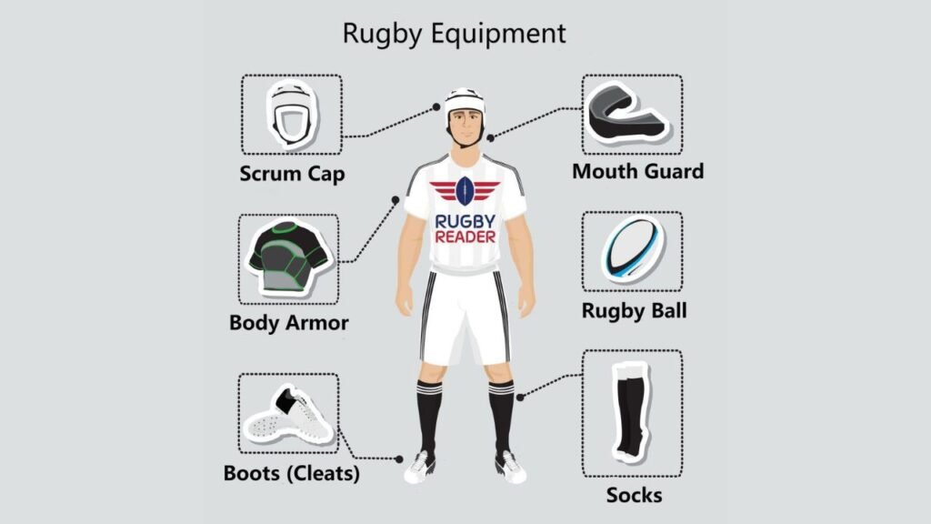 Minimal gear is worn by rugby players. Majority of them use mouthguards and few of them use soft scrum caps. This approach promotes safer tackling techniques.